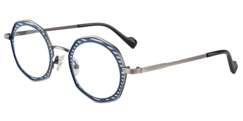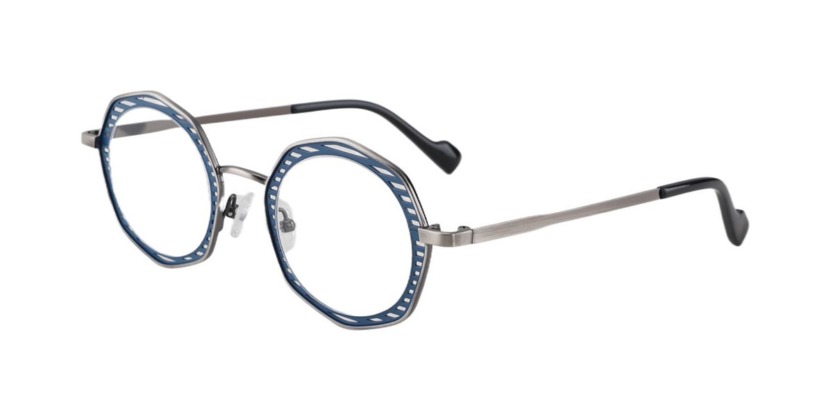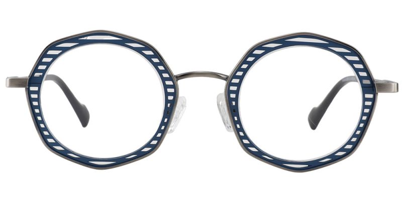 Round Prescription Glasses 23224 Grey Blue